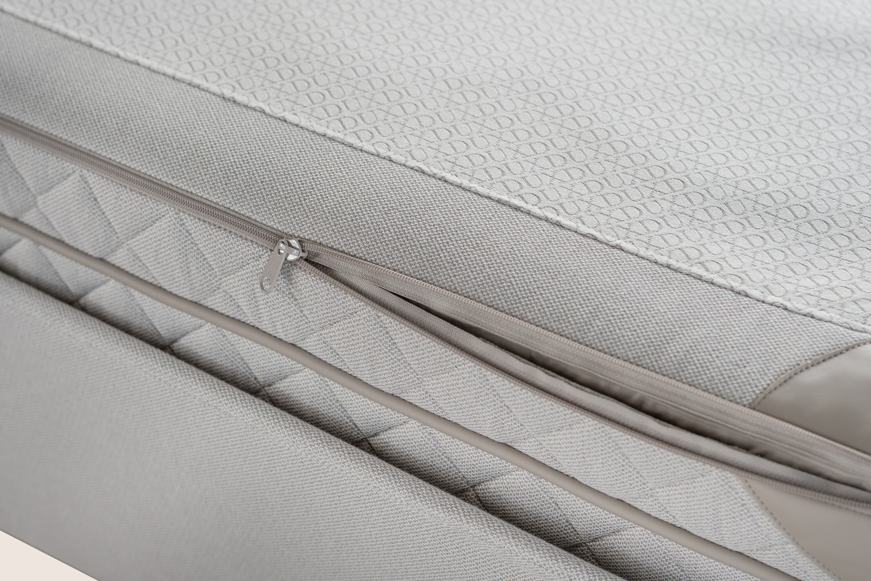 La couche supérieure du lit DUX avec Pascal peut être dézippée pour révéler six cassettes à ressorts interchangeables ; trois de chaque côté. Vous pouvez disposer les cassettes en fonction de votre taille, de votre morphologie et de vos besoins.