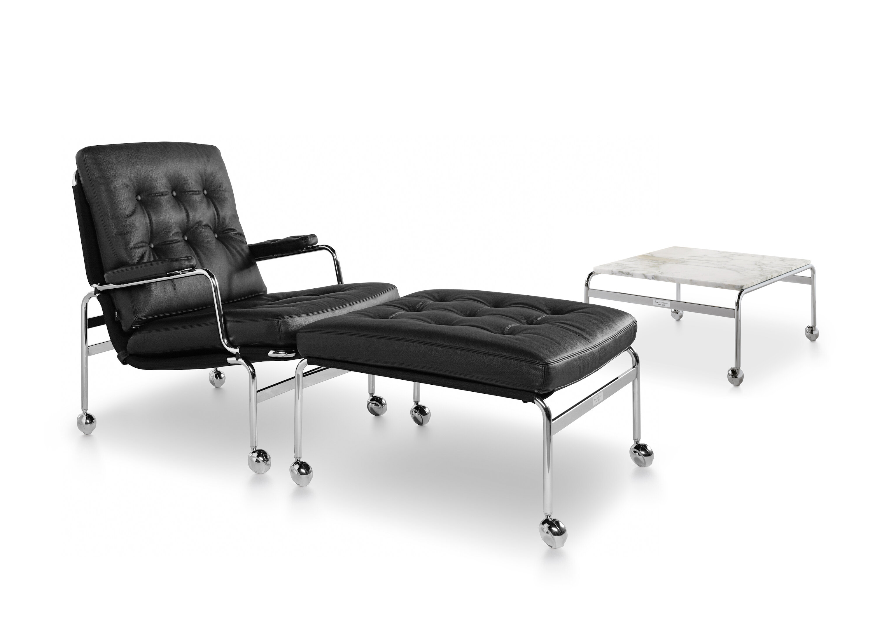 Le fauteuil Karin original a été conçu par Bruno Mathsson en 1969 et a été le premier meuble d’une collaboration fructueuse de plusieurs décennies. Ce tabouret élégant fait partie intégrante de cette collection et améliore le confort de votre fauteuil Karin grâce à ses coussins rembourrés reposant sur un cadre chromé avec un repose-pieds.